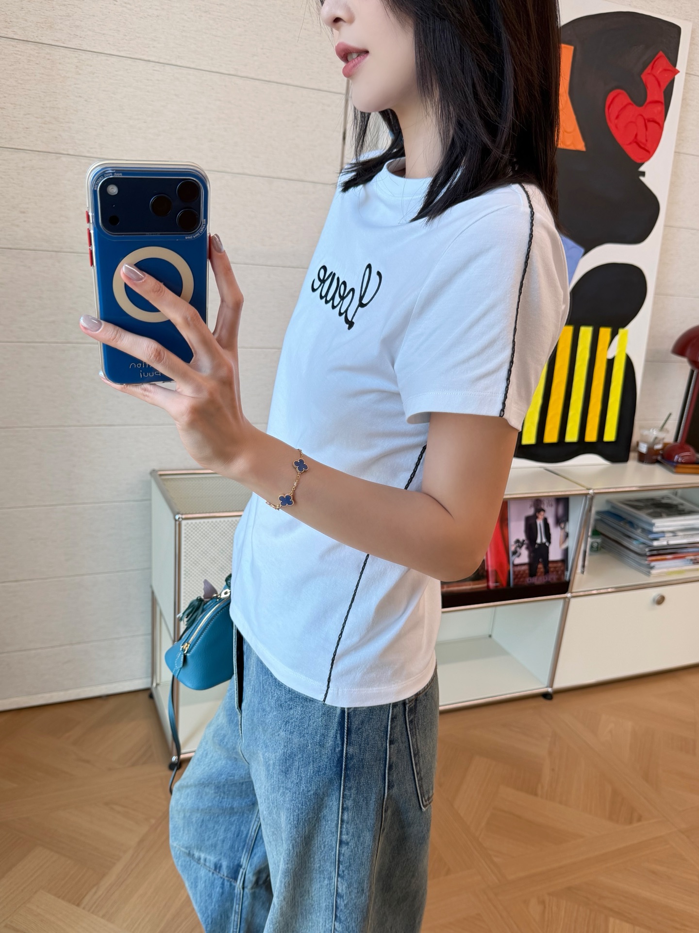 搭配上也完全不用動腦,牛仔褲、寬褲、短褲都能輕鬆搭,想走休閒感或偏酷一點的街頭風都沒問題,是衣櫃裡出場率會很高的一件 T 恤。
