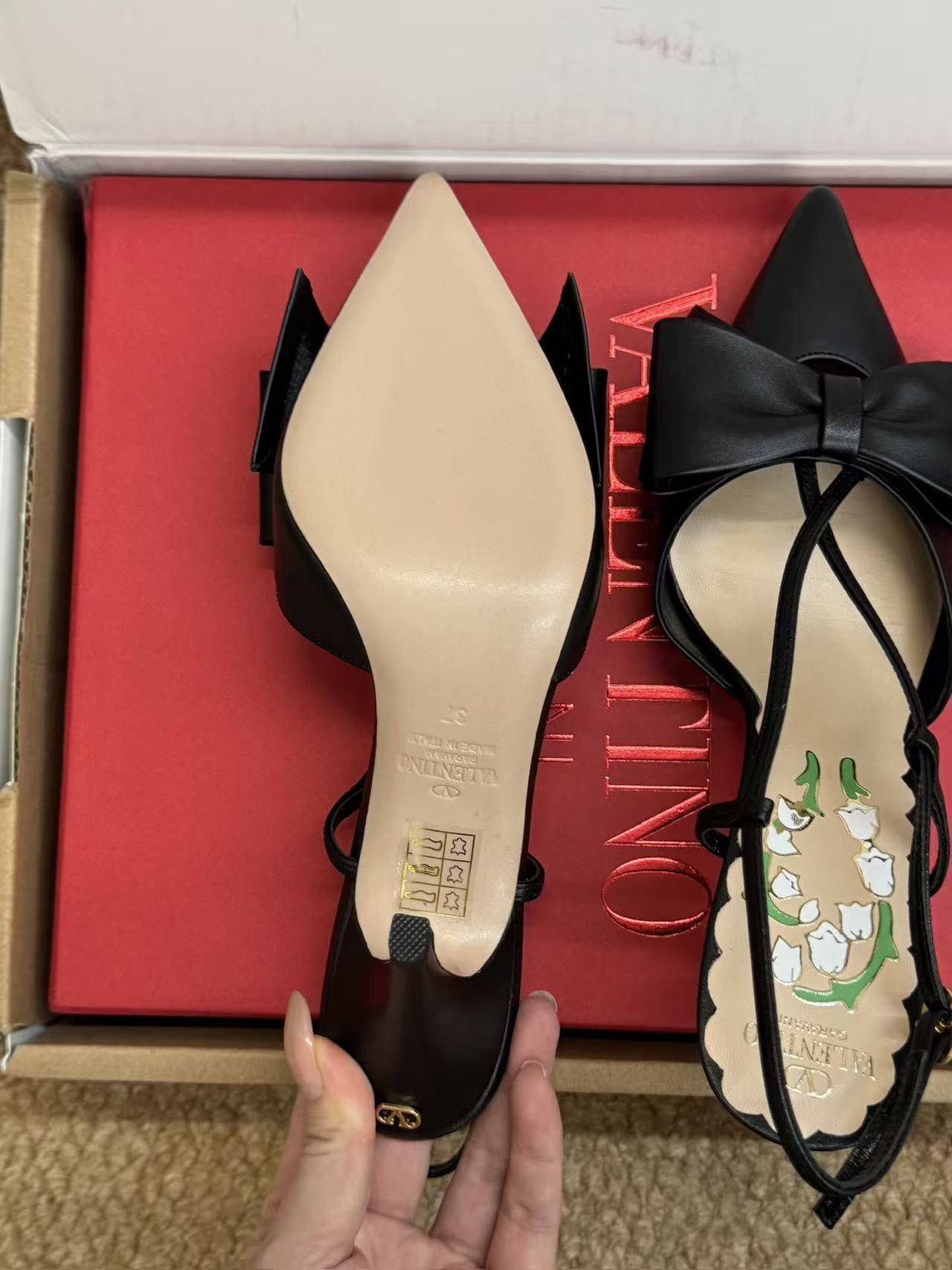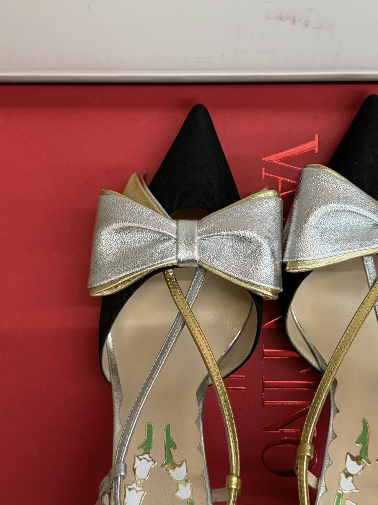 它完美融合了兩種截然不同的氣質:一邊是現代感十足的銳利尖頭與纖細高跟,象徵著女性的力量與精準;另一邊則是夢幻的鈴蘭印花與飄逸蝴蝶結,細訴著詩意般的浪漫。