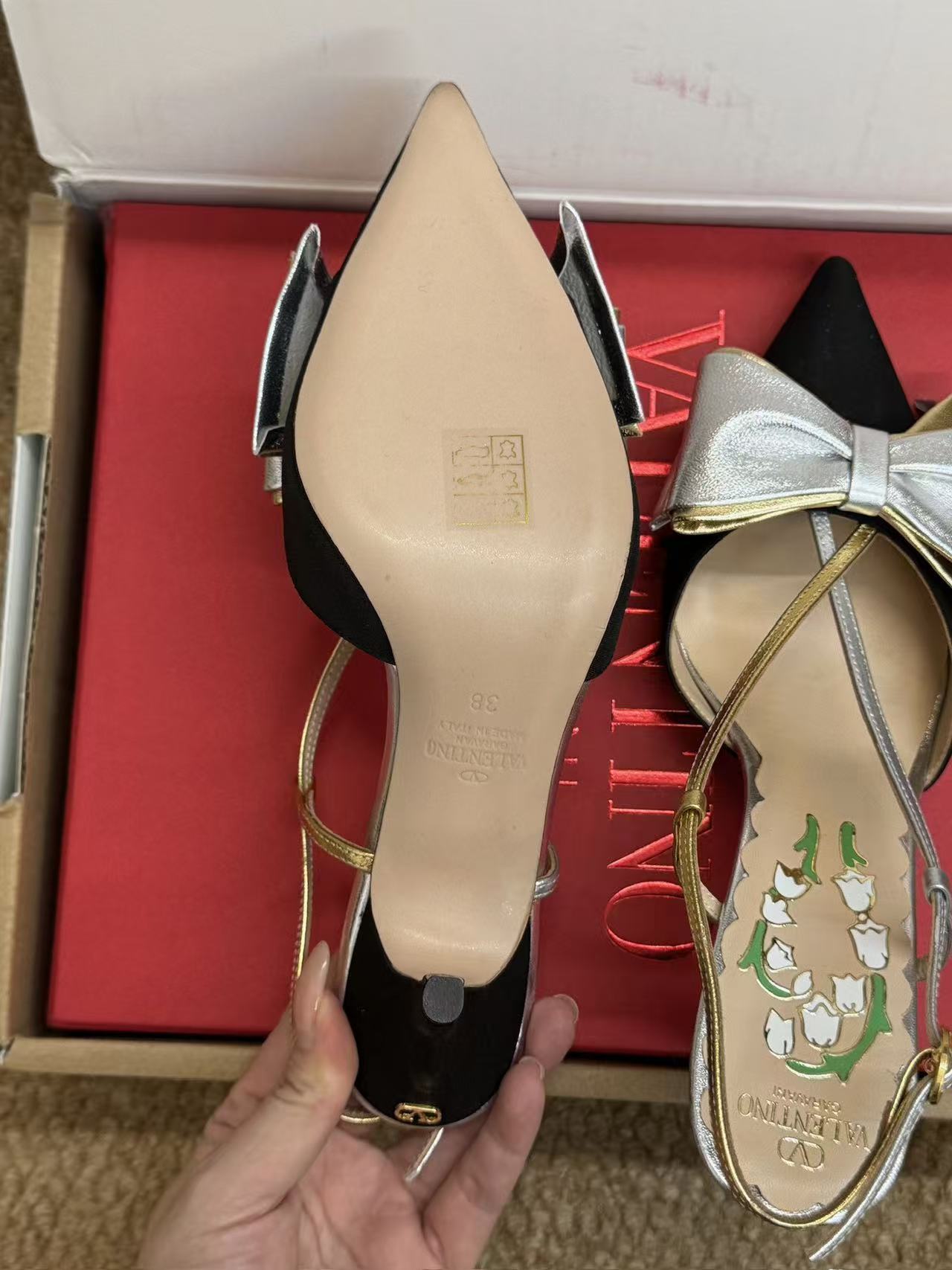V家 尖頭蝴蝶結鈴蘭高跟涼鞋